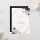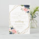 Esta invitación geométrica dorada y ondulada a la boda es perfecta para un boda rústico. El diseño está decorado con bonitos azules oscuros pintados a mano, con flores doradas, azul marino, rosado, onduladas y verdes follajes, agrupados en elegantes ramos, adornados con un marco geométrico. Guarde el papel incluyendo más detalles en la parte posterior de la invitación en lugar de en una tarjeta separada.