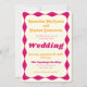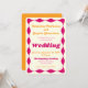 Divertida y divertida, esta impresionante invitación a una boda rosa y dorada tiene un estilo retro de los años setenta y un pop moderno. Un borde ondulado único enmarca la tipografía ondulada con curvas. El boho brillante compite por tu fabuloso boda de los 70. Diseño: los colores de Jeannie Colors: rosa caliente, rosa y dorado Todos los colores y texto se pueden personalizar en la herramienta de diseño.