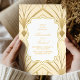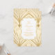 Anuncie su día especial con sofisticación atemporal usando nuestra Elegante Invitación Geométrica Art Deco Boda de Oro Blanco. Esta impresionante invitación combina el glamour clásico de la época Art Déco con elementos de diseño moderno, creando una perfecta combinación de elegancia y estilo. Nuestra invitación a la boda presenta intrincados patrones geométricos en lujoso blanco y oro. El diseño de inspiración Art Déco añade un toque de encanto vintage al tiempo que mantiene un ambiente contemporáneo. Imagina el placer de tus invitados cuando reciben esta invitación exquisita, marcando el tono para una celebración de boda memorable y elegante. Las invitaciones, elaboradas a partir de material de primera calidad, son tan lujosas como parecen. El acabado liso y la textura rica mejoran la estética general, asegurando que su invitación destaque. Los acentos dorados le dan un toque de opulencia, por lo que cada carta es un placer para los clientes. La personalización es clave con nuestra Elegante Invitación Geométrica de Oro Blanco Boda Art Deco. Personalizar con tus nombres, fecha de boda y un mensaje sincero para crear una invitación única y significativa. Cada invitación está cuidadosamente diseñada para reflejar su estilo personal y el significado de su día especial. El envío de estas invitaciones es sencillo y elegante. Cada conjunto viene con sobres a juego, asegurando una presentación cohesiva y pulida. La robusta construcción garantiza que sus invitaciones lleguen en perfecto estado, listos para impresionar a sus huéspedes. Haga inolvidable su día de bodas con nuestra Elegante Invitación de Oro Blanco Boda de Art Deco Geométrico. Celebra con estilo y sofisticación, preparando el escenario para un evento verdaderamente memorable. Pida hoy mismo su set y deje que sus invitaciones reflejen la belleza y elegancia de su historia de amor. No espere - cree una primera impresión inolvidable con nuestras exquisitas invitaciones de boda!