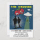 ¡Para los aficionados a la ciencia ficción y los amantes del horror vintage! Tener un boda único con un tema de ciencia ficción. Las invitaciones incluyen platillos voladores, secuestros de vacas, monstruos malvados de tomate y una pareja (2 hombres) corriendo.