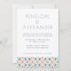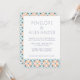 Invitación de boda azul con diseño de patrón geométrico ornamentado y elegante