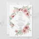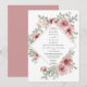 Una invitación de boda moderna y elegante que presenta hermosas flores de rosa y tipografía elegante con un fondo de rosa polvoriento en el reverso. Diseñada por Thisisnotme©