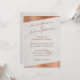 Una invitación de boda muy trendy, que combina múltiples tendencias de boda del año 2019: metálico, mármol, geométrico y fuentes especiales.