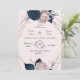 elegantes flores azul marino y rosa polvoriento invitación a boda geométrica botánica Los detalles del purpurina se simulan