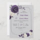 magnífica invitación a la boda con flores polvorientas moradas y blancas y algunas hojas sobre un marco geométrico de plata sobre un fondo gris. Los detalles del purpurina se simulan. Es adecuado tanto para los bodas como para los participantes. PARA OBTENER MÁS PRODUCTOS COINCIDENTES, haga clic en la colección superior o póngase en contacto conmigo.