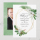 Hojas tropicales acuarelas de moda y la invitación a la boda de magnolias blancas con marco geométrico dorado. La foto al revés es opcional. Si prefiere eliminarla, desplácese hasta la parte inferior de "Personalizar esta plantilla" y haga clic en "Editar usando la herramienta de diseño". En la Herramienta de diseño puede editar, escalar, eliminar o mover cualquier texto o elemento de diseño que desee.