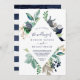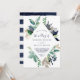 Esta moderna invitación a una boda geométrica con rombo de vegetación náutica es perfecta para un crucero o una boda en la playa. El diseño botánico presenta hermosas hojas verdes con flores de la marina y acentos de estrella de oro, lo que le da un ambiente de playa.
