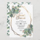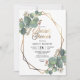 Esta es una hermosa invitación a la ducha de novia con marco geométrico de oro eucalipto