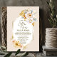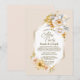 Invite a sus amigos y seres queridos a su celebración post-boda con esta elegante invitación a la boda floral blanca y dorada. Diseñada específicamente para las parejas que han optado por una ceremonia privada, esta invitación sirve como una manera deliciosa de extender tu alegría e invitar a tus seres queridos a celebrar tus recientes nupcias. Esta invitación ofrece cómodas plantillas de texto, por lo que es muy sencillo añadir los detalles esenciales. Hay una variedad de tipos de papel y estilos de esquina disponibles para sus invitaciones únicas, junto con la opción de descargar.