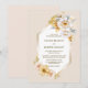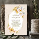 Invite a sus amigos y seres queridos a su boda para que presencie y celebre el comienzo de su viaje de toda la vida con esta elegante invitación a una boda floral dorada y blanca. El texto del personalizable le permite añadir sin esfuerzo los nombres de la novia y del novio, la fecha del boda y los detalles necesarios de su celebración. Hay una variedad de tipos de papel y estilos de esquina disponibles para sus invitaciones únicas, junto con la opción de descargar si prefiere un formato digital.