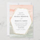 Elegante y moderna invitación a la boda con los detalles de tu boda en un hermoso guión de caligrafía, enmarcado por un falso marco geométrico de Relieve metalizado dorado y un fondo de color verde azulado rosa y polvoriento. Las invitaciones de boda únicas se revertirán a un fondo de color verde sabio.