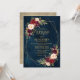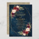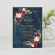 Elegante tarjeta de invitación a la boda floral de color geométrico y romántico, con un ramo de burdeos / marsala, rosas color rosa, morado, melocotón con un follaje a juego sobre el fondo azul marino. Perfecto para un boda de otoño/verano medio. Encontrará más diseños y variaciones de mi tienda "blissweddingpaperie". Y no dudes en ponerte en contacto conmigo para seguir personalizando o coincidiendo con elementos