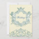 Hermosas imágenes vintage de un marco rodeado de cantos y bolas de flores y borlos bañados en un azul Marie Antonieta sobre un fondo de color crema.