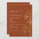 Terracota de moda, fondo de tierra polvorienta y decorado con simples hojas de ginkgo dorado. Personalice y agregue sus nombres y los detalles.