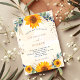 Fondo de color blanco y dorado, decorado con girasoles, vegetación eucaliptos, hojas doradas y polvo falso purpurina de oro. Personalice y agregue sus nombres y detalles del fiesta.