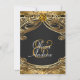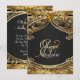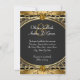 Hermosa invitación de boda con remolinos dorados y negros. Esta elegante invitación de boda con glamour negro y dorado se personaliza fácilmente para su evento simplemente eligiendo el botón "¡Personalízalo!" para comenzar a agregar los detalles de su evento, estilo de fuente, tamaño y color de la fuente, y redacción. Tenga en cuenta que todas las pegatinas, tarjetas y diseños de invitaciones que encontrará en Zazzle son gráficos impresos sin joyas reales, lazos, partes o piezas en relieve, estampadas o añadidas.