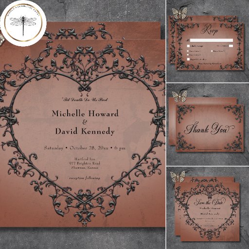 Gothic Black & Rust Filigree Heart WeddingDiseñado por Kathe Santillo