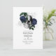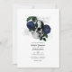 Whimsical vintage floral gótica esqueleto invitación a la boda con mano en acentos de azul marino y personalizable negro a los detalles de tu evento. Ideal para cualquier tema o boda en el jardín.