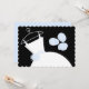 Una invitación a la ducha de bonito con un elegante vestido boda y flores en azul y blanco sobre un fondo negro. Un diseño de personalizable para que puedas personalizar con tu propio texto, imágenes e ideas.