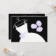 Una invitación a la ducha de bonito con un estilizado vestido boda y flores de color morado y blanco sobre un fondo negro. Un diseño de personalizable para que puedas personalizar con tu propio texto, imágenes e ideas.