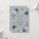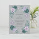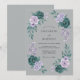Una paleta sofisticada de gris paloma, verde azulado profundo y lavanda suave crea una atmósfera sombría pero elegante. Este diseño presenta rosas acuarelas exuberantes y delicados racimos de hortensias dispuestos en un rocío botánico ornamentado. Los tonos fríos y el follaje invernal evocan un sentido de romance refinado perfecto para un evento estacional.