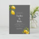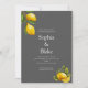 Presentamos la impresionante invitación a una boda gris con un moderno tema de limón, la elección perfecta para parejas que buscan un diseño fresco y moderno para sus invitaciones a la boda. La combinación de gris y limones colgantes con una hermosa vegetación crea un ambiente elegante y elegante que impresiona a los clientes. Esta moderna invitación a la boda presenta un sencillo y limpio tipo de letra blanco, excepto los nombres de las parejas que están en negrita y en un moderno alfabeto negro, por lo que destacan por invitación. La temática del limón de esta invitación es perfecta para las parejas que aman el color amarillo y que planean un boda de primavera o verano. Esta invitación a la boda es perfecta para parejas que buscan un diseño moderno y único para sus invitaciones a la boda. La temática del limón es una opción fresca y divertida, perfecta para una variedad de estilos bodas, como bodas en el jardín y bodas al aire libre. El fondo gris y el sencillo tipo de letra hacen que esta invitación sea versátil y fácil de personalizar para adaptarse a cualquier esquema de color o estilo boda. En general, esta invitación a una boda gris con un tema moderno de limón impresiona a los huéspedes y marca el tono de su día especial.