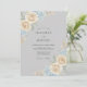 Este diseño presenta un fondo sereno de gris suave adornado con delicadas rosas crema de acuarela y racimos de hortensias azules claras. Los arreglos florales etéreos crean una atmósfera romántica y sofisticada perfecta para un evento de temporada. Los acentos de follaje verde salvia y hojas doradas completan esta elegante estética botánica.