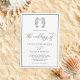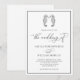 Este diseño clásico mínimo blanco y gris oscuro de la invitación a la boda es perfecto para bodas con temática costera y náutica y destino a la playa, con dos hermosos caballitos de mar besándose en la parte superior, elegante caligrafía de escritura, y un marco alrededor del borde.