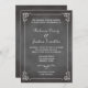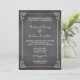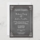 Sorprenda a sus huéspedes con estas invitaciones elegantes y románticas del boda. Las características del diseño un fondo de la pizarra con el texto fijado en tiza tienen gusto de las letras del estilo. La voluta del estilo del vintage adorna elegante cada esquina. Substituya simplemente el texto de la muestra por su información del boda. El dulce, simple con una indirecta de la moda nostálgica, esta estilo de la pizarra invita hará su boda de moda y memorable.