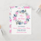 Esta hermosa tarjeta de guardar la fecha de boda con acuarelas de color rosa intenso y azul marino presenta una corona de rosas, hojas y ramas en tonos de azul, verde, marrón y dorado. El texto personalizable está en azul marino y rosa, y la parte posterior tiene un patrón general de flores y hojas en los mismos colores con una caja de texto azul marino y rosa con letras blancas para que puedas agregar la información del sitio web de la boda si lo deseas.
