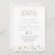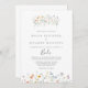 Esta invitación a la boda floral floral y salvaje es perfecta para un boda rústico. El diseño se compone de acuarelas rosas, rubias, violetas, navales y elegantes flores blancas con hojas de color verde esmeralda.