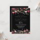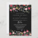 La invitación nupcial española con flores silvestres de jardín es perfecta para un boda rústico. El diseño se compone de una variedad multicolor de flores rosadas, ruidosas, violetas, violetas, violetas, violetas, borgoñas y salvajes en un fondo negro.