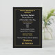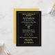 Una invitación de boda simple y muy informal en tonos de negro, blanco y dorado.