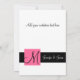 Elegantes invitaciones de boda (5 x 7 pulgadas) con el diseño Damasco blanco y negro y el monograma inicial con color de acento rosa. Una manera perfecta de invitar a sus invitados a su boda. Diseño contemporáneo, con diseño adamascado vintage con un diseño que le permite personalizar con su monograma inicial y sus nombres y texto de invitación a la boda. Necesita ayuda con el diseño o la redacción de la invitación de boda, tienda de contactos o luxuryweddinginvitations@gmail.com. Diseño de diseño de Elke Clarke ©2009. Gráficos con licencia. Además, elija entre una variedad de fuentes y hermosos papeles para hacer FABULOUS sus invitaciones de boda!