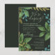 Anuncio de fuga de novios - Invitación a la recepción: Hojas de té de acuarela pintadas a mano con follaje de jardín botánico sobre fondo oscuro. Tipografía moderna y trendy con campos de plantilla fáciles de editar. La elección de la fuente, el diseño y los colores se pueden modificar según el estilo y el gusto.