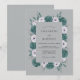 Este diseño presenta una paleta sofisticada de azul verdoso profundo y lavanda pálido sobre un fondo gris atenuado. Las exuberantes flores de clavel arrugadas en un tono de joya oscura se emparejan con delicadas anémonas y un follaje suave. Perfecto para un evento invernal, la obra de arte evoca un sentido de elegancia sombría y romance atemporal. La densa disposición botánica crea una estética artística y pulida.