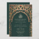 Invitación de boda islámica esmeralda tradicional Mihrab arabesco