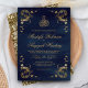 Invitación Boda islámico azul de la armada del marco dorado a