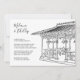 Fácil de personalizar plantilla de boda. Boda de destino en blanco y negro en la ciudad de Nueva York, invitación de ceremonia de boda en el pabellón de las damas de Central Park. Arte lineal del gazebo de la boda ubicado cerca del lago en la zona alta del oeste de Central Park en el corazón de la ciudad de Nueva York.