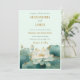 Flores de Lotus con bordes dorados sobre fondo verde claro. Este diseño de Boda es totalmente personalizable, lo que le permite cambiar cualquiera de los detalles del texto en el diseño FRONT: Boda detalles BACK: Información detallada