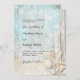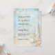 Una rústica invitación a la boda en la playa con marisco a la deriva, conchas y arena. Azul y beige. Personalice y agregue sus nombres y detalles.