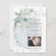 Over the Moon in Love presenta una romántica luna de agua en azul polvoriento acentuada con follaje de eucalipto y vegetación en varios tonos suaves y delicados de verde. Una elección mágica y mística para el tema celestial de su boda. Diseño de Suite de Boda por WhimsicalArtwork™ Esto es parte de una Suite de Papelería de Boda completa con papelería de boda, baby shower y otros eventos coincidentes.