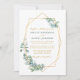 Moderna y elegante acuarela Eucalyptus Greenery, Tarjeta de Invitación a la Boda Geométrica Gold