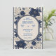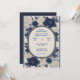Haga una primera impresión impresionante con esta invitación a la boda floral azul y plateada de la Marina. Con elegantes diseños florales de marfil, esta invitación desborda la sofisticación y el encanto, perfecto para una boda intemporal y elegante
