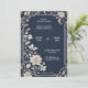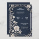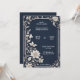 Haga una primera impresión impresionante con esta invitación a la boda floral azul y plateada de la Marina. Con elegantes diseños florales de marfil, esta invitación desborda la sofisticación y el encanto, perfecto para una boda intemporal y elegante