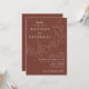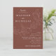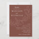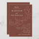Invitaciones a bodas botánicas con sus nombres y detalles bodas con letras blancas divididas por una vid de hojas esbozadas con un fondo marrón. Las elegantes invitaciones nupciales se coordinan con nuestra colección de bodas de Cascading Leaves.