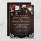 Invitación Boda Mason Jar, floral de borgoña de madera rústic