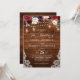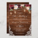Invitación Boda Mason Jar, floral de borgoña de madera rústic