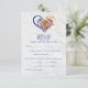 Tarjeta RSVP de Boda Mexicana Colorida Floral Heart & Butterflies. Eleva tu boda de temática mexicana con nuestra vibrante carta RSVP de bodas temáticas mexicanas, parte de la colección "Colorful Floral Folk Art Heart Mexican Wedding Invitation". Esta tarjeta RSVP, diseñada para complementar su fiesta de fiesta, cuenta con detalles exquisitos inspirados en ilustraciones de flores indígenas. La tarjeta muestra un corazón adornado con intensos tonos de flores naranjas, azules, rosas y rojas, enmarcado por la silueta de otro corazón con mariposas naranjas brillantes. El fondo de papel suave y de algodón, combinado con una tipografía azul brillante, ofrece un contraste alegre y colorido que añade elegancia a la papelería boda. Esta tarjeta RSVP nupcial mexicana es perfecta para bodas de fiesta, bodas de destino en México y otras celebraciones, y está disponible en español para atender necesidades bilingües. Personalizar tu tarjeta RSVP es una brisa con nuestras opciones de personalizable. Simplemente haga clic en la pestaña "Personalizar" para incorporar sus detalles y hacerlo único suyo. Todo el texto es editable, lo que le permite ajustar los elementos de diseño y el texto para que se ajusten a su estilo y preferencias. Utilice el botón "Editar usando herramienta de edición" para reorganizar, eliminar o agregar texto sin esfuerzo. Añade un toque de fiesta y asegúrate de que tus huéspedes respondan con estilo con nuestra tarjeta RSVP de bodas temáticas de personalizable mexicano.