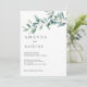 Fije el tono para su elegante celebración con esta Minimalista invitación a la boda Eucalyptus, con flores blancas pintadas a mano y exuberante vegetación de eucalipto en un suave estilo acuático. Con una tipografía limpia y un diseño sencillo, esta invitación es perfecta para los bodas modernos, románticos o con temática de jardín. Ideal para parejas que buscan una estética intemporal inspirada en la naturaleza.